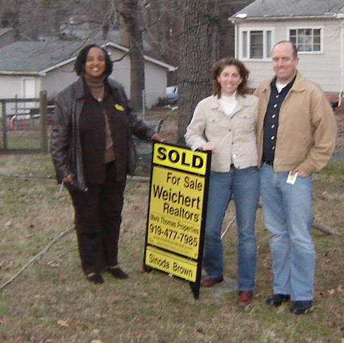 And here is a picture of Daddy and I on the day we bought our house. The woman standing next to us was Brendalynn, our realtor.
